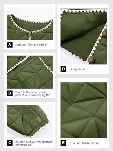 More information about Tankaneo Womens Cropped Quilted Jacket Winter Lightweight Puff 3/4 Sleeve Button Down Contrast Trim Coat