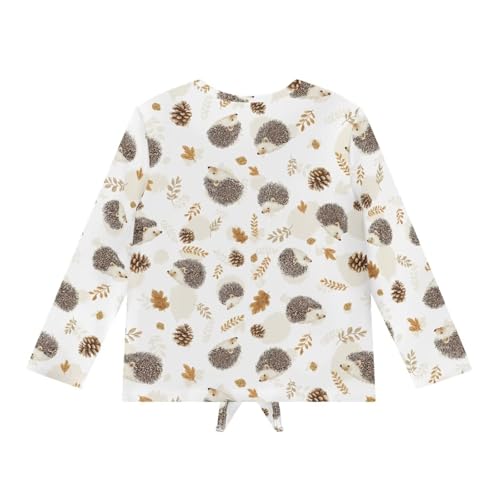 trending ! Girls Long Sleeve Shirts with Tie Hem Fall Casual Lightweight Tops Pullover Crewneck Kid Fit Blouses 5-12 Years