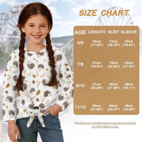 More information about Girls Long Sleeve Shirts with Tie Hem Fall Casual Lightweight Tops Pullover Crewneck Kid Fit Blouses 5-12 Years