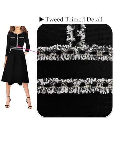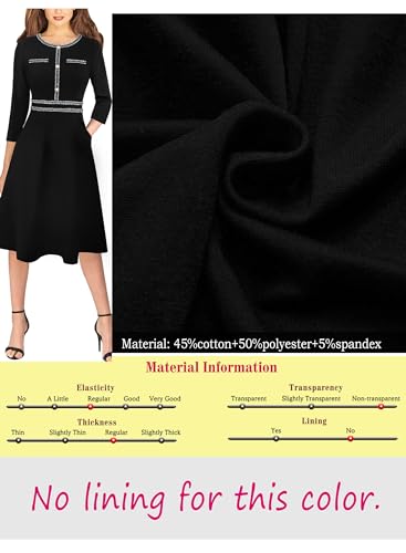 Fabric type: 70% POLYESTER+25% COTTON+5% SPANDEXCare instructions: Machine WashOrigin: ImportedClosure type: ZipperSize: [Model's height 5'5, Body Measurements Bust 32.48, Waist 24.6, hips 34.45 inches, wears size XS.] Each variation product has a special size chart. Please follow the size chart in the product photos and choose the size based on your own body measurements before buying. Thank you!Material: Garments in different colors/patterns may use different materials, please check the listing pictures.Style: Crew Neckline, 3/4 Sleeve, Front unmovable Buttons, Two Handy Pockets, Tweed Trim Design, with Metallic Stitching Detail, Slim Fitted, Knee Length, A Concealed Back Zipper, A-Line Silhouette helps hide body imperfection well.Occasion: Wear to Work Dresses for women, Business, Office, Interview, Semi-Formal, Cocktail, Party, Church, Wedding Guest, Dinner Date, Graduation.Garment Care: Machine Wash in cold water, Machine wash gently, hang or line dry. [Do not tumble dry]. Perfect for everyday use. premium materials and excellent craftsmanship ensure long-lasting durability.