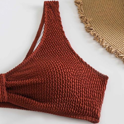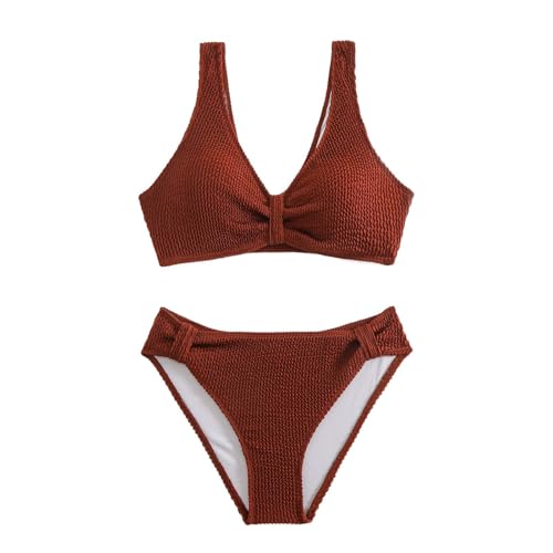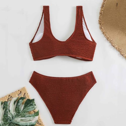 trending ! Womens Bikini Swimsuits 2 Piece Solid High Waisted Full Coverage Push up Bathing Suit High Cut Texture Beach Swimwear