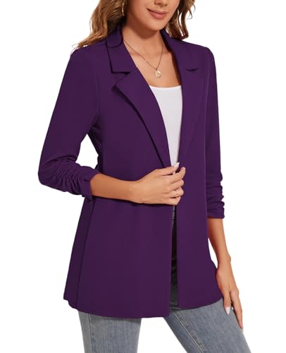 Women's Long Blazer Jackets Button Front Lapel Ruched 3/4 Sleeve Business Casual Office Work Lightweight Blazers