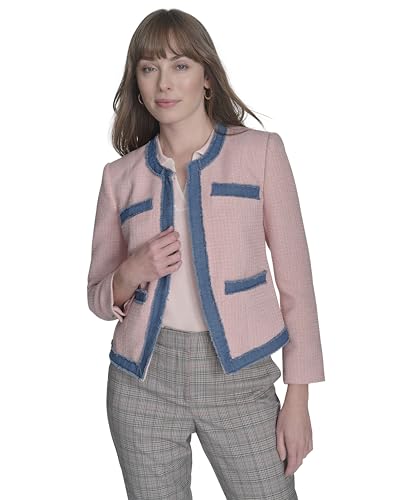 Why Choose Tommy Hilfiger Women's Collarless Denim Drimmed Open Front Jacket?