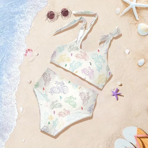 Toddler Girls Bikini Set Color Motorcycle Swimsuits Kid Bowknot Swimwear 2 Piece Bathing Suit 3-12T