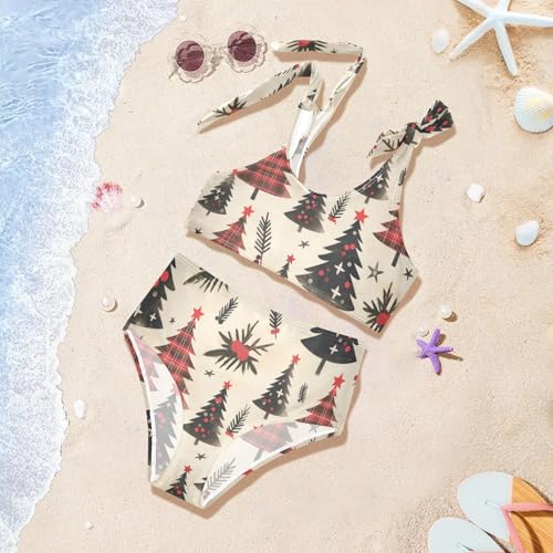KLL Buffalo Plaid Christmas Trees Girls' 2 Piece Bikini Sets rapid-Dry Beach Swimsuit Swimwear