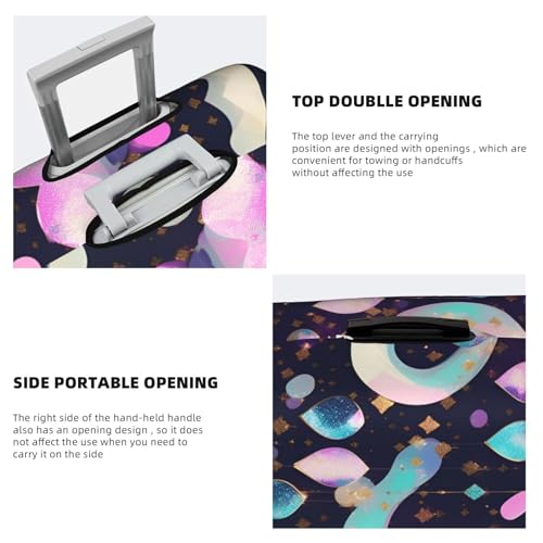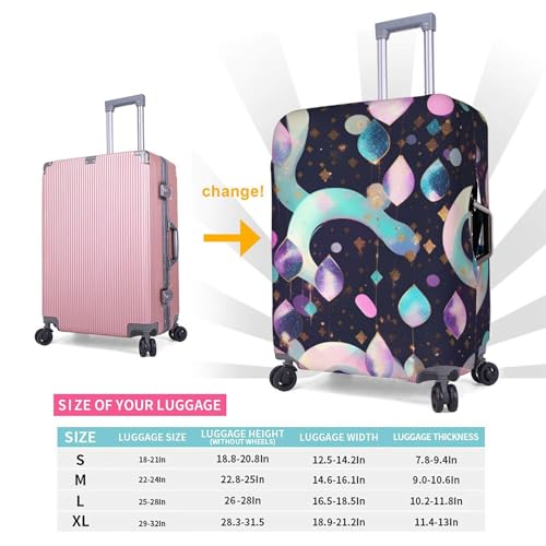 Durable And Elastic Material: Made From A Blend Of 15% Spandex And 85% Polyester, This Luggage Cover Is Crafted With 320 Grams Of premium Material, Ensuring Durability And Elasticity.Super High Laminating Protection: The Glittery Pretty Pattern Highly Elastic And Yoga-Like Tenacity Of The Cover Provides Super Thickness, Increasing Abrasion Resistance To Protect Your Suitcase From Dirt And Scratches.4 Size Options Available: Available In Four Sizes: S (18-20 Inch), M (22-24 Inch), L (25-28 Inch), And Xl (29-32 Inch), Ensuring A Perfect Fit For Most Standard Suitcases.special Side Opening Design: Both Sides Of The Cover Feature Zippers For Side Handles, Making It Compatible With Both Left And Right Handle Luggage. The Bottom Zipper And Elastic Buckle Ensure A Secure And Snug Fit.Fashionable And Easy To Identify: The Unique And Colorful Design Helps You Quickly Identify Your Luggage At The Airport, Reducing The Risk Of Losing Your Suitcase During Travel. Perfect for everyday use. High quality materials and excellent craftsmanship ensure long-lasting durability.
