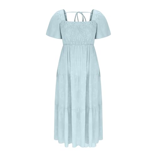 HGps8w Women's Puff Sleeve Maxi Dress - Boho Floral Print Summer Square Neck Tiered Ruffle A Line Long Flowy Beach Dresses