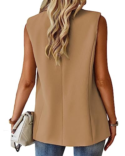 trending ! Sleeveless Blazers for Women Lapel Open Front Vest Jacket Cardigan Casual One Button Work Office Blazer with Pockets