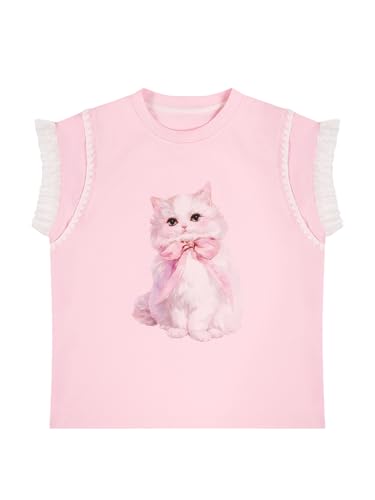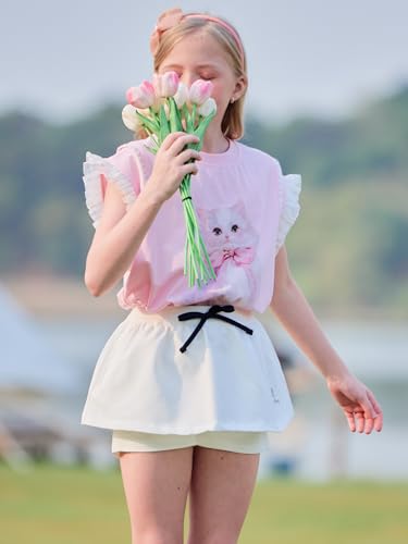 Fabric type: Cotton 63.4%, polyester composite elastic fiber 36.6%Origin: ImportedNeck style: Cowl NeckSleeve type: Ruffle Sleeve๐ฑ Adorable Cat Print Design Features a sweet white kitten with a pink bow โ perfect for cat-loving girls who adore cute fashion.๐ฌ๏ธ Soft & Breathable Cotton Fabric Made of lightweight, stretchy cotton-blend fabric, this tank top keeps girls cool and comfortable all day. Perfect for active play, school, or summer outings.๐ Charming Ruffle Sleeve Accents Sleeveless flutter sleeves with ruffle trim add a playful and girly touch to her look.๐ Perfect Fit for Girls Ages 6โ16 (3.9ftโ5.4ft) Designed to fit girls from 3.9 to 5.4 feet tall, making it ideal for growing kids and teens.Please refer to our size chart before purchasing. ๐ ้ๅ่บซ้ซ3.9่ณ5.4่ฑๅฐบๅฅณๅญฉ๏ผ6โ16ๅฒ๏ผ๏ผๆปก่ถณๆ้ฟ้ถๆฎต็็ฉฟ็้ๆฑ๏ผ่ดด่บซ่้ไธๆๆใ๐ Versatile Style for Multiple Occasions This adorable tee is easy to pair with skirts, shorts, or jeans, making it a perfect choice for a variety of occasions. Whether sheโs heading to school, joining a summer camp, enjoying a weekend outing, celebrating a birthday party, attending a family gathering, going on a trip, taking photos, or simply relaxing at home โ this top keeps her chic and comfortable. Perfect for everyday use. premium materials and excellent craftsmanship ensure long-lasting durability.