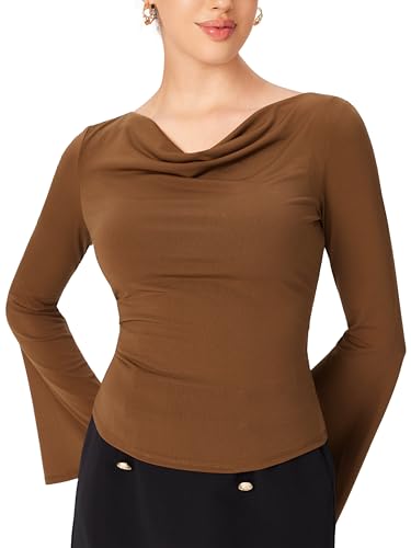 trending ! CIDER Cowl Neck Long Sleeve Blouse Bell Sleeve Going Out Casual Top