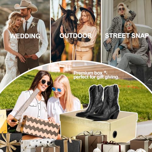 Sole material: Thermoplastic PolyurethaneOuter material: Faux LeatherClosure type: Pull-OnLooking for a gift that's both thoughtful and fashionable? DANAZANA cowboy ankle boots are the ideal choice. With their high-quality construction and elegant design, they're sure to impress anyone who appreciates fine footwear. DANAZANA wide calf ankle boots are not just for show, they're built to last, making them a practical yet fashionable choice for any occasion.Designed with a 7.2-inch shaft and a 2.64-inch heel(For Size 9), DANAZANA women cowboy embroidered ankle boots offer a comfortable fit that's perfect for all-day wear. The slip-resistant rubber sole ensures you stay steady on your feet, while the premium leather keeps your feet comfortable and supported.Discover the perfect fusion of style and comfort with DANAZANA new collection of premium leather cowgirl embroidered ankle boots. Crafted from the finest leather, these short western ankle boots for women feature a chic, pointed toe and a sturdy block heel that adds a touch of height without compromising on stability.With intricate embroidery adorning both the shaft and the toe, these cowboy ankle boots are a statement piece that will elevate any outfit. Each pair is designed to make a lasting impression. Available in three timeless colors: classic black, rich brown, or passion Burgundy, these Embroidered ankle boots are a gift that will be cherished for years to come.Pair these wide calf ankle boots with your favorite jeans for a classic cowboy look, or dress them up with a skirt or dress for a more sophisticated vibe. The pointed toe and block heel provide a modern twist to the traditional cowgirl boot, making them versatile enough for both casual and dressy outfits. No matter your style, these lady ankle boots are sure to complement your wardrobe. Perfect for everyday use. first-class materials and excellent craftsmanship ensure long-lasting durability.