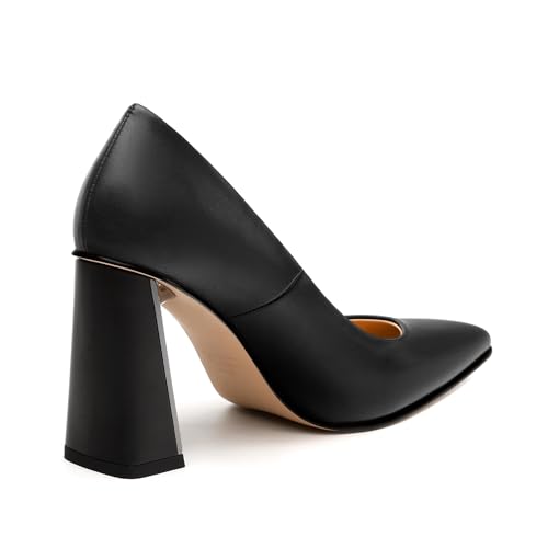 Sole material: RubberOuter material: SyntheticClosure type: Pull-OnChic and Timeless Design: Crafted with a pointed toe and a solid matte finish, these heels exude timeless elegance and chic style. The classic design ensures versatility, allowing you to pair them with a variety of outfits, from dresses to tailored pants, for a polished and put-together look.Slip-On Comfort: Designed for convenience without compromising style, these pumps feature a slip-on design. Say goodbye to the hassle of buckles or laces β slide into these heels effortlessly and enjoy comfort throughout the day or night.Leg-Lengthening Chunky Heel: Boost your confidence with a 3.3-inch chunky heel that not only adds height but also creates a flattering, leg-lengthening effect. Walk with poise and make a statement wherever you go in these chic and empowering heels.Abundant Colors: We offer this pump in a range of colors to suit different tastes and preferences. Whether you prefer classic black or bright pink, we have a color option that will complement your personal style and add a pop of color to any outfit.Cruelty-Free Fashion: We understand the importance of ethical choices, which is why our Stiletto High Heels are proudly free from animal products. You can step out in confidence, knowing that your stylish footwear reflects your commitment to cruelty-free fashion. Perfect for everyday use. premium materials and excellent craftsmanship ensure long-lasting durability.