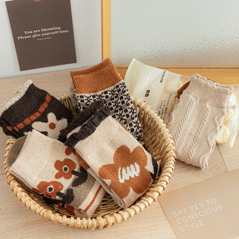 5/10 Pairs Wool Socks for Women Thick Knit Cozy Vintage Cute Animal Floral Crew Socks