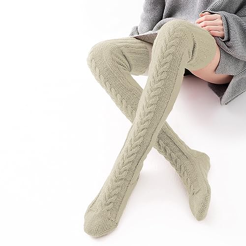 trending ! Pcavin Women's Thigh High Socks Over the Knee Cable Knit Boot Socks, Long heated Fashion Leg Warmers Winter(Khaki(2024))