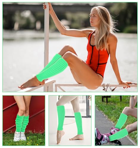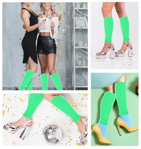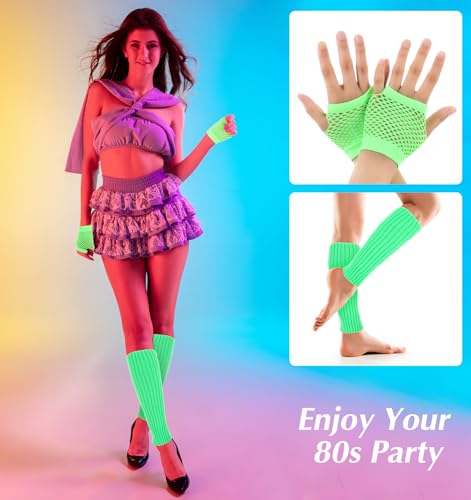 Neon Leg Warmers and Fishnet Gloves Set - Leg Warmers 80s, Women Fashion Knit Leg Warmers for Women, 80s Stretchy Dance Party Accessories for Women