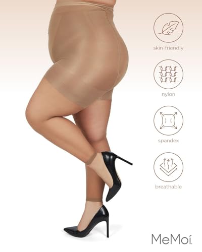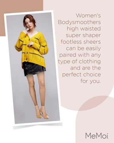 More information about MeMoi Bodysmoothers High Waisted Footless Pantyhose for Women, Ultra Sheer Control Top Pantyhose - Sizes Small to Q2