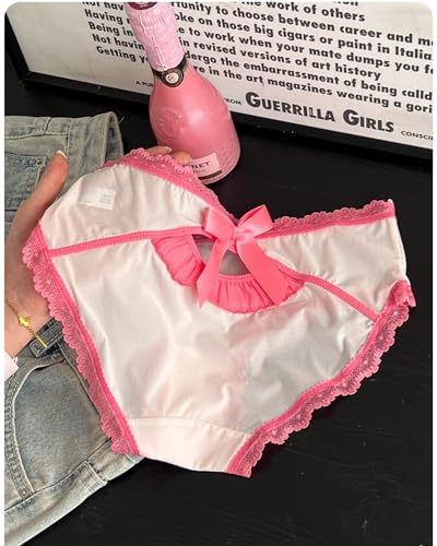 Sweet Bow Underwear for Teen Girls Age 8-16 Milk Silk Comfy Panty Set Frill Trim silky Cotton Crotch Mid-rise Briefs