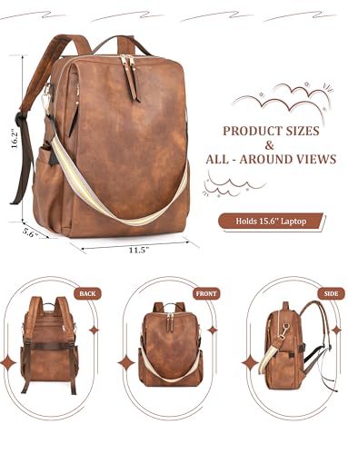 Dora & Liz Laptop Backpack for Women, Leather Travel Backpack with 15.6 Inch Laptop Compartment, College Work Computer Bag