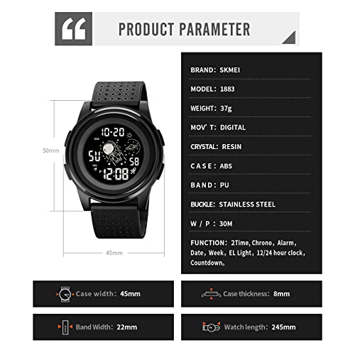 - Multifunction Watch:Auto Date,Alarm,50M Water Resistant,LED display,Shock Resistant,Stop Watch,Back Light