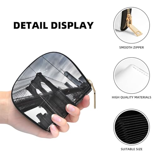Brooklyn Bridge Printed Card Wallet for Women Men Cute Zipper Card Cases Holder Mini Coin Purse with 12 Card Slots