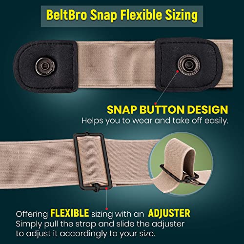 BeltBro Snap No Buckle Elastic Belt for Men and Women — Fits all Belt Loops, cushy & hassle-free To Use, Pant Waist Tightener