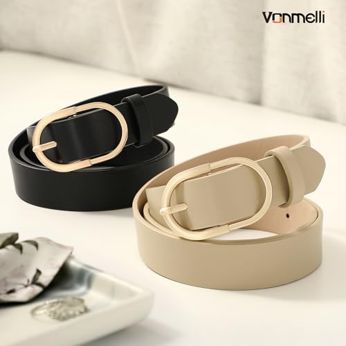 VONMELLI 3 Pack Women's Belts for Jeans Pants Black+Black+Beige