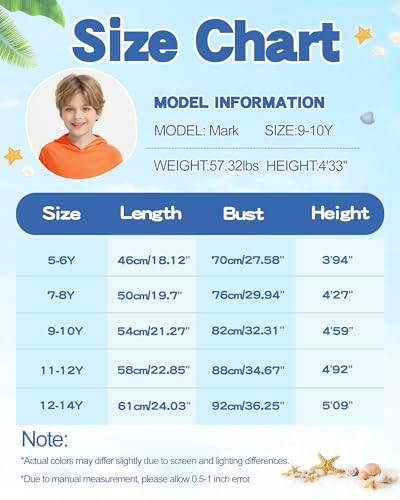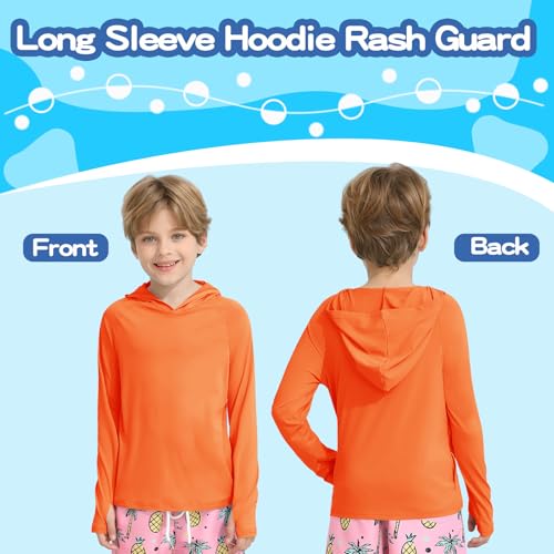 Fabric type: 86% Polyester, 14% SpandexOrigin: ImportedNeck style: Hooded NeckSleeve type: Long SleeveUPF Sun Protection Hoodie Boys Girls:Enjoy superior sun protection with our quick-dry and long sleeve hoodie rash guard featuring UV, and UPF 50+ ratings.Providing excellent protection against harmful UV rays.These quick dry hoodie and cooling hooded track jacket shields your child's skin from sunburn making it perfect for climbing travel,fishing, swim, surfing, seaside and other outdoor activities.Moisture-Wicking and Quick-Dry Performance: Stay cool and comfortable with our kids teens hoodie rash guard, designed with moisture-wicking and quick-dry fabric. These long sleeve shirt are ideal for intense workouts, whether at the gym, running, or hiking. Perfect for both casual and activewear. The cooling and dry technology keeps you feeling fresh in all conditions.Functional fashionable Everyday Wear: Rash guard as combine style and function.Flat-lock seams to reduce chafing, increase comfort.Raglan sleeves and elastic 4-way stretching structure that provide a full range of motion, Enjoy a relaxed fit that's not too tight are built for performance and protection. The zipper is durable and smoothly glides, making it simple for children to dress themselves and providing quick changes on the go. The pockets prefect for storing toys or beachcomber collectibles.Both with Hooded, Thumb Holes Design:Long Sleeved Sun Shirts with a convenient hood, this rash guard offers additional coverage for the head and neck ,Thumbholes keep sleeves in place and add a little more coverage in hot weather. It's ideal for those extra sunny days when extra protection is needed, ensuring comprehensive sun safety. Available in very bright and fashionable colors for enhanced visibility during outdoor adventure.Versatile All-Season Wear: Boys Girls Quick Dry Hoodie from everyday wear to outdoor beach vacation rash guard are perfect for basic hoodie sweatsuit and tracksuit or UV sun protection shirt. Crafted from breathable polyester and spandex that regulate body temperature , they provide warmth during cooler months while still being lightweight enough for summer activities. Great for school casual wear or sport gear, these performance shirts offer durability and comfort throughout the year. Perfect for everyday use. first-class materials and excellent craftsmanship ensure long-lasting durability.