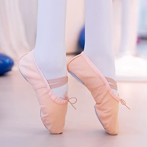 Canvas Ballet Shoes for Girls, Dance Practice Slippers Split supple Leather Flat Shoes(Toddler/Little Kid/Big Kid)