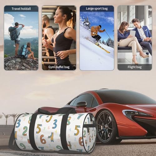 Large Duffle Bag for Travel - Math Number Print Cartoon Gym Bag for Women Men, Foldable Travel Bags for Women Men with Zippered Multiple Pockets