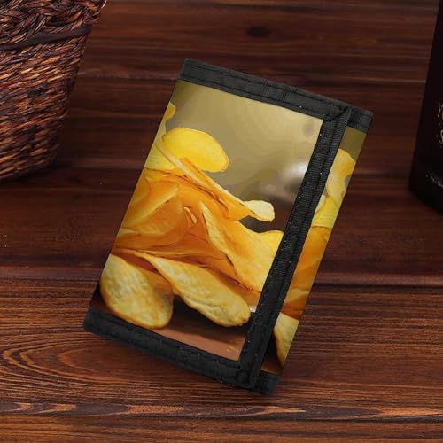 Potato Chips Trifold Wallet for Men - Money Clip Slim Wallets with Multiple Card Slots Minimalist Small Front Pocket Wallet for Everyday Carry