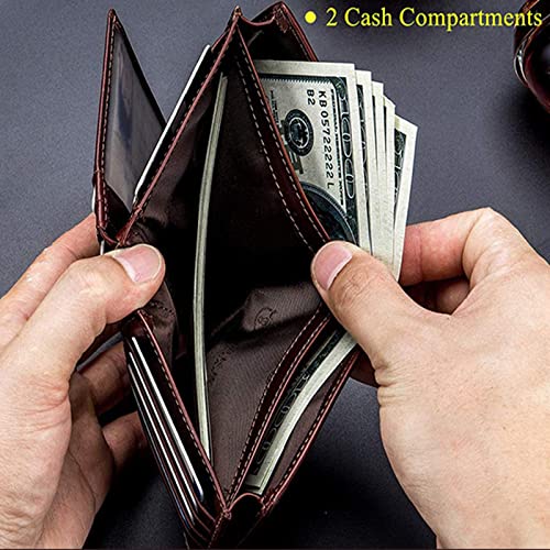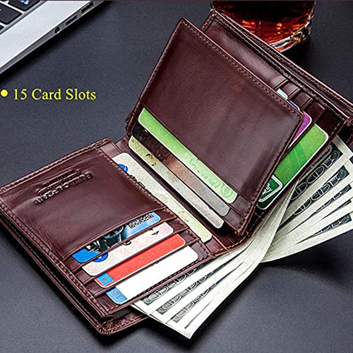 Genuine Leather RFID Blocking Wallet for Men,Cowhide Bifold Wallet Vintage Bifold Wallet Money Pouch15 Credit Card Slots+2 Cash Pouch+1 Coin Pouch+1 Photo Slots