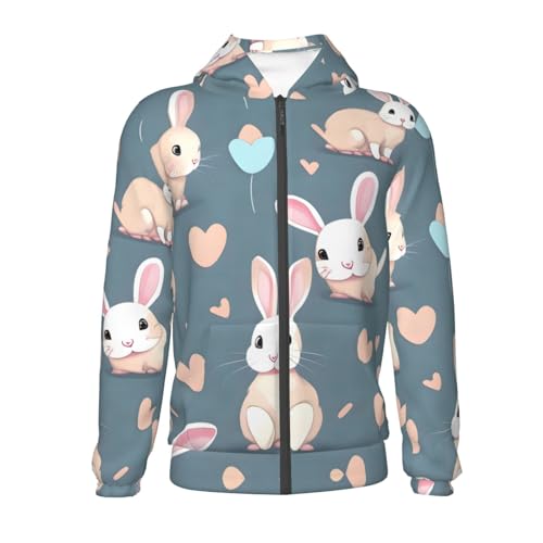 Cartoon cute bunny Print Girls Athletic Zip Up Hoodies,Sweatshirts with Pockets Long Sleeve Hooded Jackets, for 7-18 Y