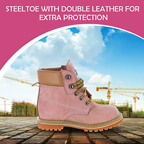 Women’s Work Boots | Waterproof Leather Work Boots for Women | Oil & Slip-Resistant smooth Toe Boots for Women | Premium Nubuck Leather | Lightweight and cushy | Pink Leather - 10.5M