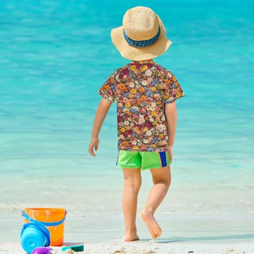 ALAZA Kids Rash Guard Girls Toddler Swim Shirts Short Sleeve Flower Vivid UPF 50+ 3T