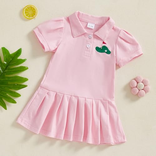 trending ! Toddler Baby Girl Golf Outfit Short Sleeve Polo Dress Pleated Drop Waist One Piece Summer Dresses for Little Girls