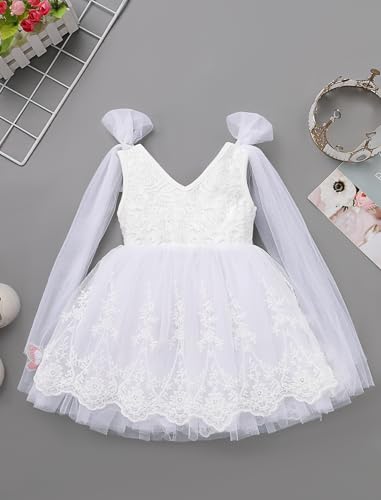 • Baby Floral Lace Dress: Gorgeous gown by IBAKOM that your sweet girl will adore. Elegant maxi tulle dress with V neckline, 3D butterfly, embroidered lace with tender lining, and flowy bow tulle sleeve.