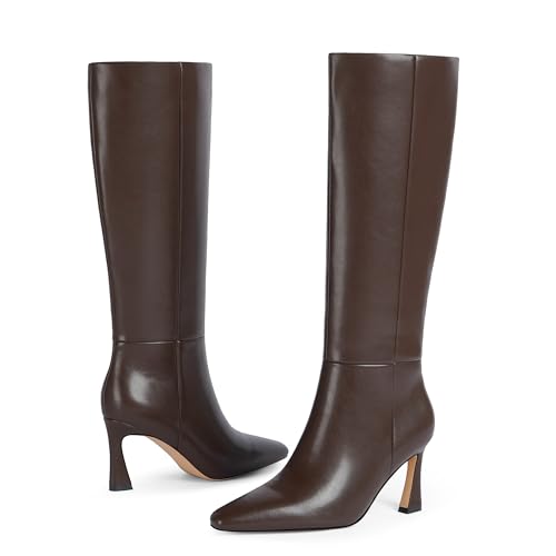 Sole material: RubberShaft height: Knee HighShaft circumference: 15.35 InchesOuter material: Faux LeatherStiletto Heel Design: A 3.27-inch (8.3 cm) heel with a textured sole provides better grip and stable, comfortable strides on any surface. It perfectly elevates your leg and body line.High-Quality Materials: Crafted with smooth PU leather, breathable lining, and a cushioned insole, these womenβs knee-high boots offer year-round comfort. The soft inner lining minimizes friction for a comfortable stride.Convenient Side Zipper: Featuring a full-size side zipper, these knee-high boots for women are easy to put on and take off, making them perfect for busy mornings or quick outfit changes.For All Occasions: These fashionable boots are suitable for daily life, going out, shopping, work, club nights, vacations, dating, parties, and more.Customer Service: Our pointed toe boots are true to US size, Please refer the size chart before you purchase.Please contact us if you have any questions. Perfect for everyday use. first-class materials and excellent craftsmanship ensure long-lasting durability.
