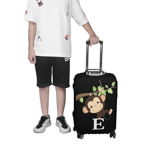 Cute Monkey And Letter E Travel Luggage Cover for Suitcase 19-32 Inches Elastic Washable Baggage Protector