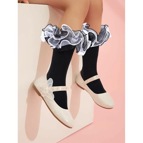 Girls Ruffle Socks 4-Layer Toddler Big Lace Frilly Little Girl Turn Cuff Fancy Pageant Dress Socks for Kids