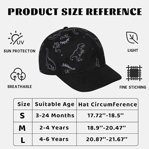100% CottonImportedMATERIAL: Soft and comfortable fabric and 6 ventilation eyelets. Breathable and comfortable for kids playing even wearing all day.SIZE INFORMATION: This toddler baseball hat is available in 3 sizes. Size S is recommended for 3-24 Months, Size M for 2-4 Years, Size L for 4-6 Years. Appropriate products are optional depending on the head size of your baby.ADJUSTABLE DESIGN: There is a velcro design at the back of the baby baseball cap so that the infant baseball cap can be easily adjusted to be better fixed on baby's head, and ensure the kids cap won't fall off when baby is playing. This design allows baby to enjoy playing more!CLASSIC BABY ACCESSORIES: The boys girls baseball hat has a nice shape and looks super fashionable, and never goes out of style! These unisex toddler baseball hats are available in a variety of colors to suit children's different preferences and costumes. Every kids cap is lightweight and easy to carry, perfect for outings!SUITABLE OCCASIONS: A wonderful baby gift! This all-seasons toddler baseball hat provides all-day protection for your lively kid, perfect for playing ball games, playing at the beach, picnicking in the park, fishing by the river and everyday wear. And this fashionable infant baseball cap is also a nice fashion accessory for taking photos! Perfect for everyday use. first-class materials and excellent craftsmanship ensure long-lasting durability.
