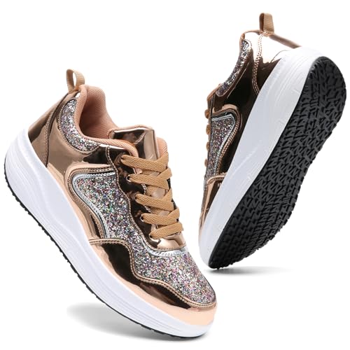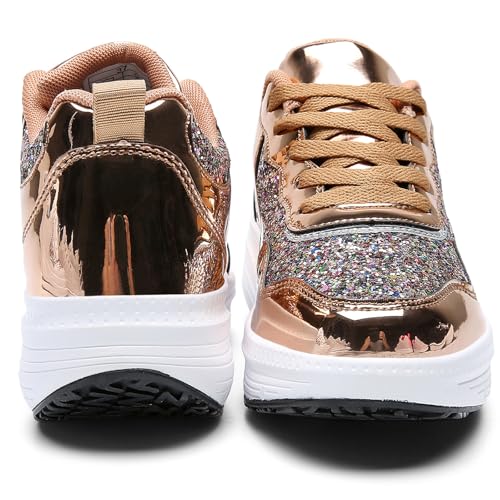 WUIWUIYU Women's Girls' Wedge Platform Shiny PU Sparkly Sequins Glitter Lace-Up Sneakers Street Dance Shoes