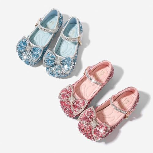 Toddler Girls Princess Dress Shoes Rhinestone Mary Janes Ballerina Ballet Flats with Bow for Wedding Party School
