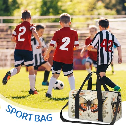 Flower Butterfly Travel Duffel Bag for Women and Men, Sport Tote Gym Bag Carry on Weekender Overnight Bags