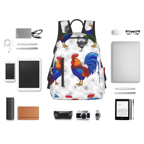 trending ! Lightweight Casual Sports Backpack for Men Women, Travel Bag Outdoor Adventure, Rooster Chicken Daypack Rucksack