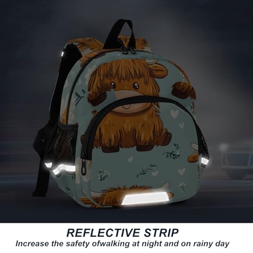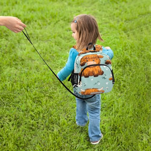 Kid's Backpack for Boys & Girls Toddler Bag Orange Highland Cattle Pattern Backpack with Safety Leash