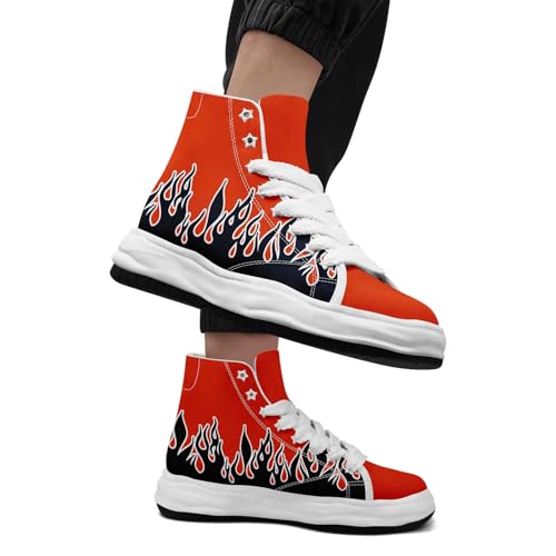 Custom Flame High-Top Platform Sneakers, Fashion Chunky Elevated Canvas Trainers for Streetwear Race Casual Footwear