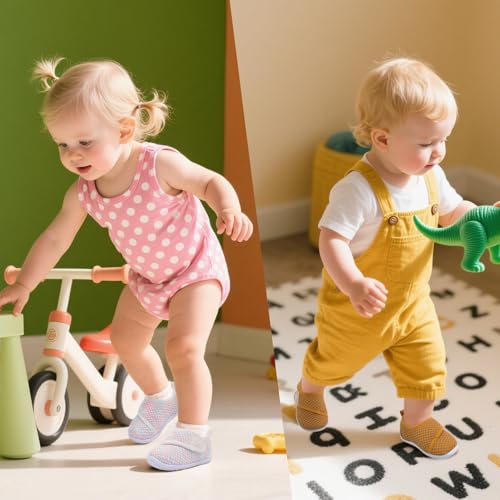 • Lightweight & Slip-Resistant: These infant shoes feature a flexible EVA sole that's ultra-lightweight, slip-resistant, and long-lasting for stable steps. The barefoot-friendly design promotes natural movement