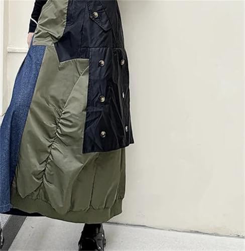 trending ! Women's Vintage Maxi Skirt Patchwork Irregular Button High-Waisted Pockets A-Line Pleats Skirts