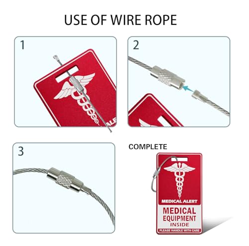 trending ! Medical Equipment Luggage Tag,Red and White with Steel Cable,Medical Id Tags for Travel