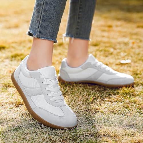 HSQ Womens Barefoot Shoes Fashion Lightweight Wide Toe Minimalist Zero Drop Sneakers Breathable Casual Walking Running Gym Shoes White Grey 10.5